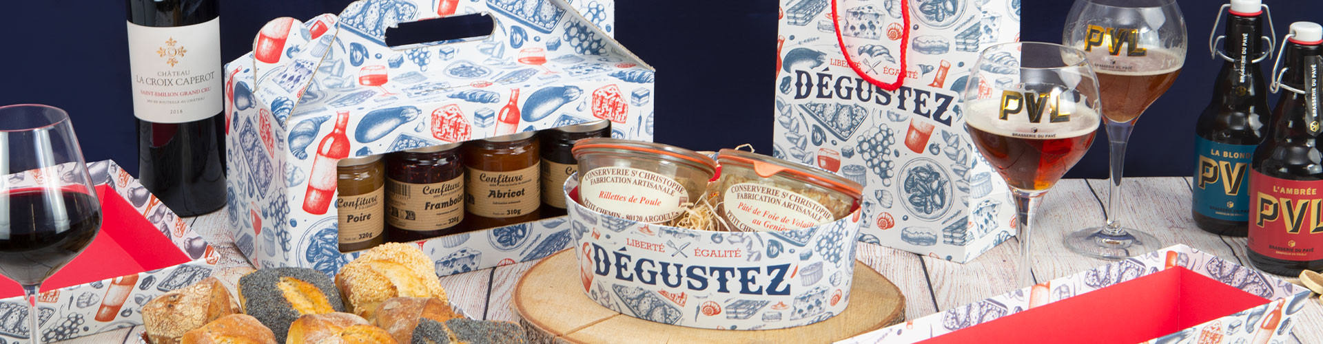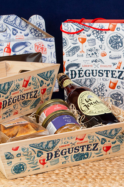 Corbeille rectangulaire en bois – Dégustez – 28 x 18 x 11 cm