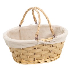 Panier ovale osier miel tissu vichy blanc/rouge anse pliable