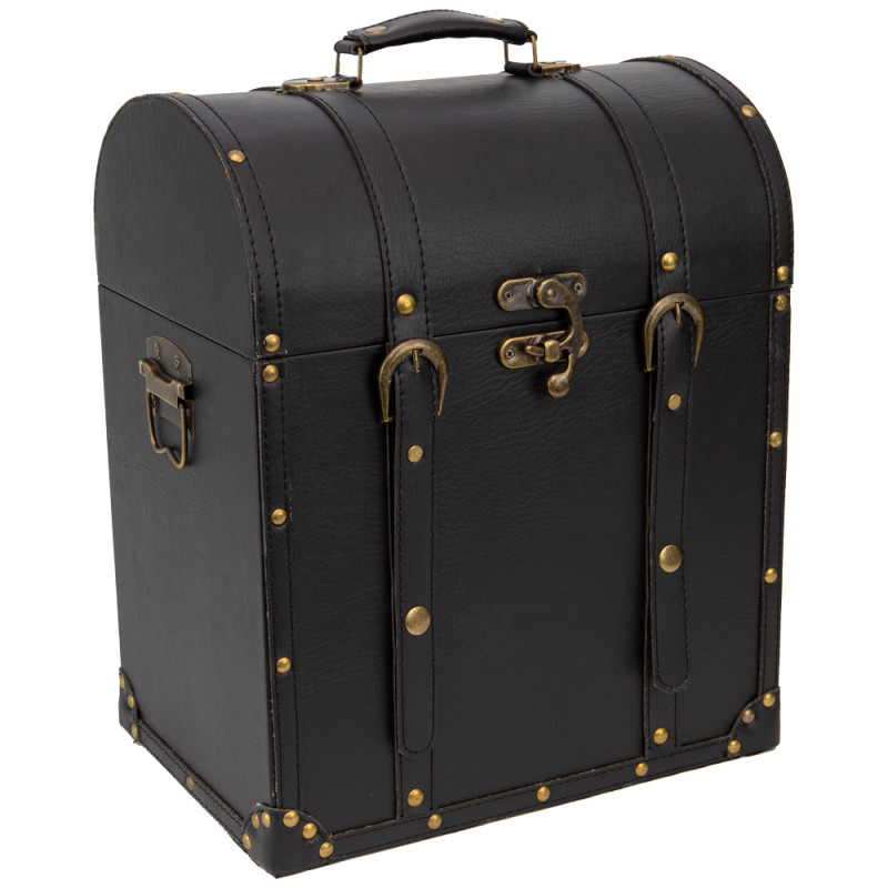 Ce coffret en bois et simili cuir noir, doté d'une fermeture en métal présente une élégance intemporelle et une fonctionnalité pratique. Avec ses dimensions de 33x22x39,5/42 cm, il est idéal pour protéger et présenter vos bouteilles, puis être réutilisé pour ranger divers objets. La matière bois lui confère une durabilité exceptionnelle et un style classique qui s'adapte à tous les décors. Facile à transporter grâce à sa poignée ergonomique en simili cuir , ce coffret est un excellent choix pourles professionnels de la vente en gros et les détaillants soucieux de proposer des produits de qualité à leurs clients.